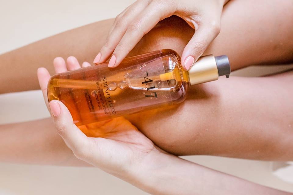 -417 đã lựa chọn và kết hợp những tinh túy từ nước Biển Chết với các loại dầu thực vật giàu vitamin và khoáng chất như dầu hạt nho, cúc La Mã, trà xanh,… để tạo ra gel tắm dưỡng ẩm và làm mềm da giúp da mượt mà, mịn màng hơn hẳn mỗi ngày.