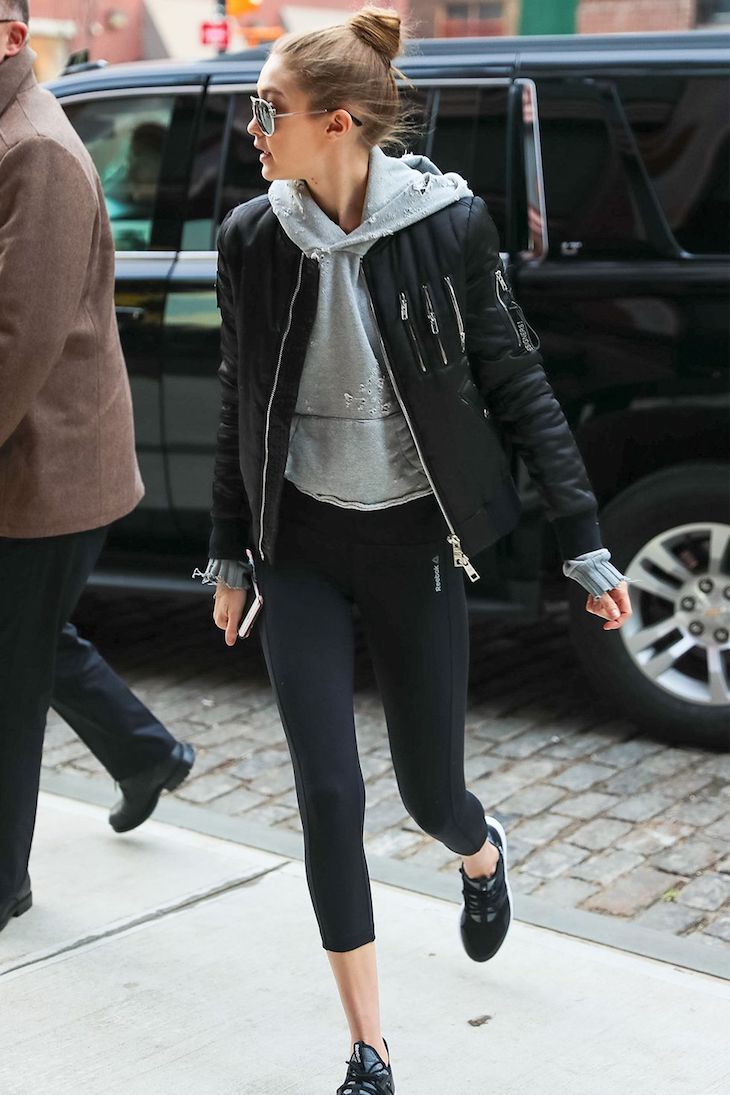 Với mái tóc dài và dày, Gigi chuộng nhất là kiểu tóc búi ba-lê khi đi tập gym vì nó gọn gàng không gây ảnh hưởng tới các bài tập cô yêu thích ví dụ như boxing.