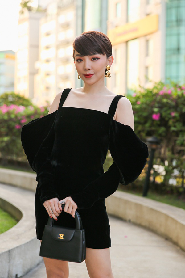 Tuần qua, Tóc Tiên cũng đã có màn xuất hiện cực kỳ xinh đẹp với váy nhung và gương mặt được trang điểm kỹ lưỡng. Làn da trắng của Tóc Tiên rất hợp với màu son đỏ đậm và màu mắt rượu chát đang cực hot. Tóc Tiên cho thấy, cô vẫn rất trẻ so với tuổi thực và nhan sắc ngày càng rực rỡ hơn.