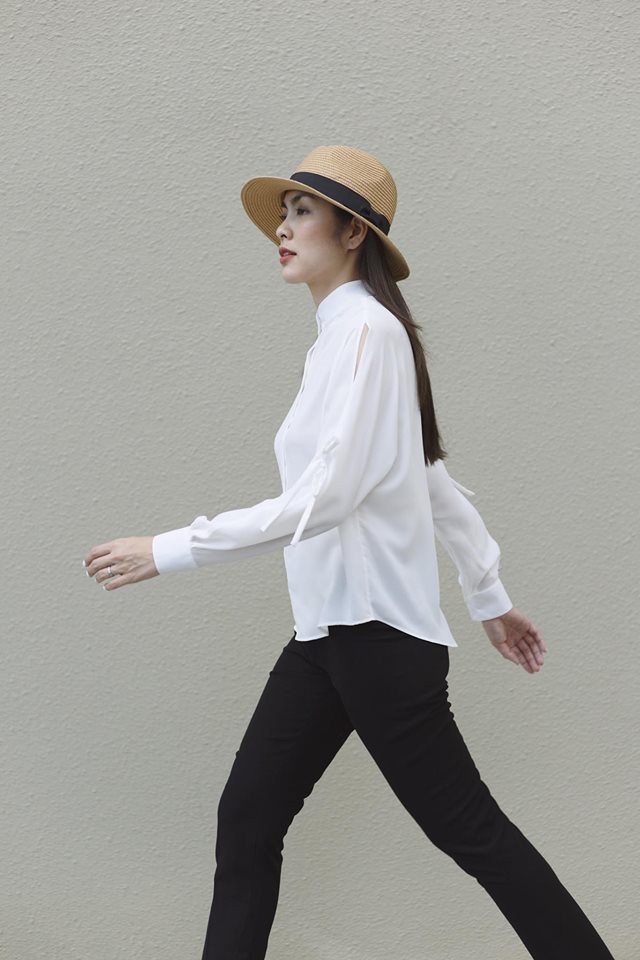 Thỉnh thoảng lắm mới thấy Hà Tăng làm xoăn nhẹ một chút phần đuôi tóc cho bồng bềnh.