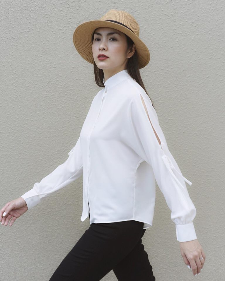 Trong bức hình mới nhất Tăng Thanh Hà đăng trên facebook, cô nàng mặc áo sơ mi trắng giản dị, tóc màu trầm buông xõa.