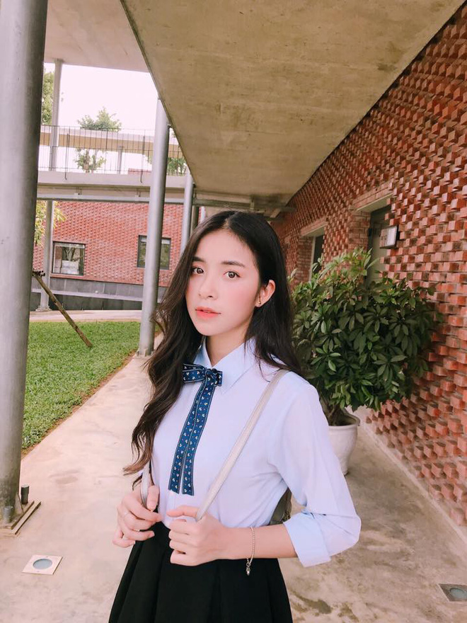 Diện đồng phục, cô chẳng khác nào học sinh cấp 3.