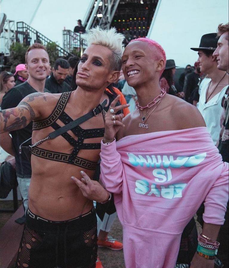 Jaden Smith xuất hiện với vẻ ngoài khá “nữ tính” với mái tóc nhuộm hồng và trang phục phá cách, nổi bật. Chụp ảnh cùng với anh là anh trai Ariana Grande cũng là người đồng giới.