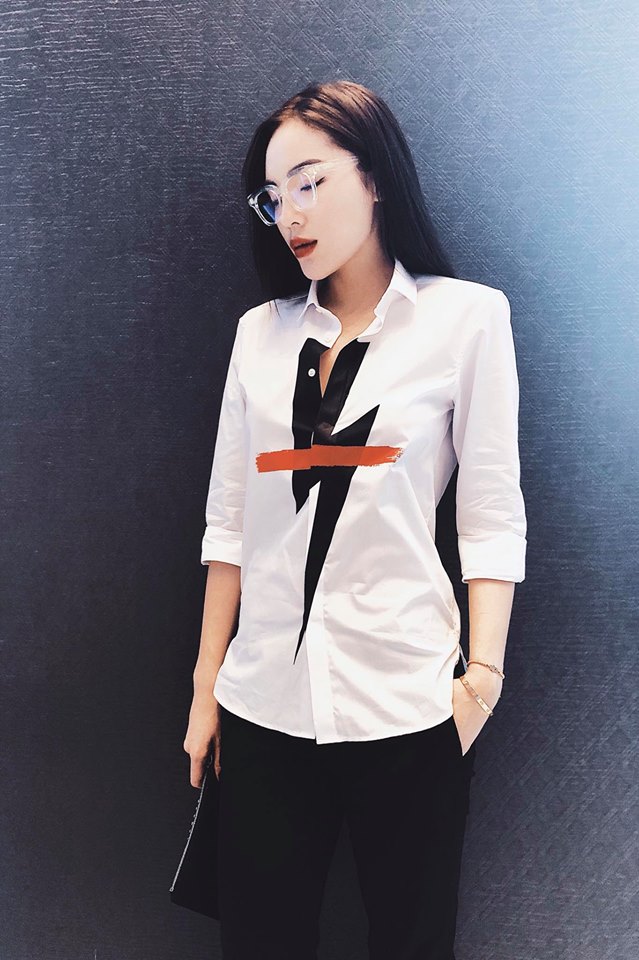 Dạo gần đây Kỳ Duyên tỏ ra vô cùng sung sức trong cuộc đua ăn mặc sang, trang điểm đẹp. Mọi thứ Duyên làm dường như đều quyết liệt. Ăn vận theo phong cách menswear và một khi đã ra khỏi nhà là trang điểm cực đậm.