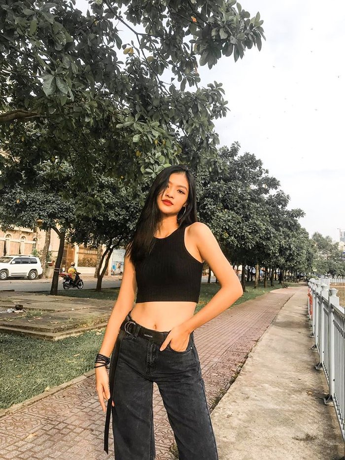 Không giống những người đẹp trên, Lương Thùy Linh là chân dài hiếm hoi diện áo áo croptop.