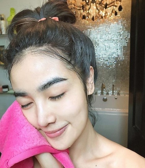 Nữ diễn viên Warutaya Nilakhuha chẳng cần tô kẻ vẽ nhiều, khi để mặt mộc vẫn thấy rõ đường nét khuôn mày đẹp.