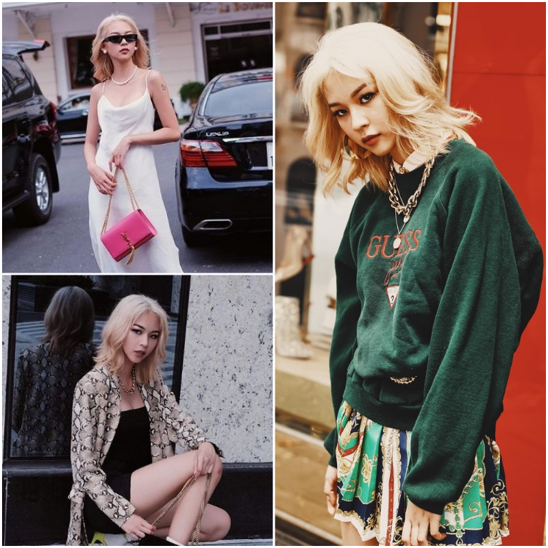 Còn nhớ, khi cô nàng fashionista cá tính Châu Bùi đổi màu tóc, hàng loạt fan phản đối và khẩn thiết mong Châu quay về mái tóc đen truyền thống. Nhưng với phong cách thời trang cá tính, phối đồ cực hay ho, Châu Bùi đã chứng minh mình cực hợp với màu tóc sáng trưng này. Châu Bùi phiên bản tóc vàng bạch kim còn chất và thu hút hơn hẳn thường ngày.