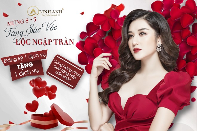 Mặt khác, nhân dịp 8/3 thẩm mỹ quốc tế Linh Anh dành tặng khuyến mãi siêu lớn chưa từng có, được áp dụng cho tháng 3/2020. Mua 1 dịch vụ tặng 1 dịch vụ, tặng thêm nhiều buổi lẻ chăm sóc da, các buổi săn chắc da cao cấp.
