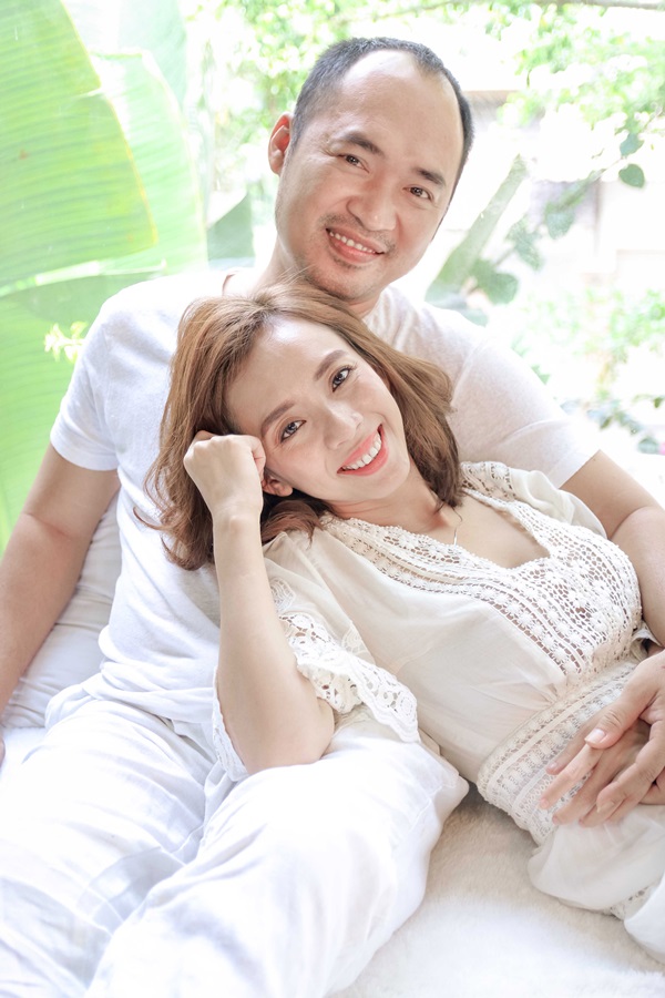 Hai vợ chồng Thu Trang - Tiến Luật. Thu Trang cho biết, TIến Luật chưa bao giờ bình luận gì về nhan sắc khiến vợ phải buồn.
