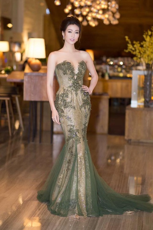 Bộ đầm đuôi cá giúp Khánh My khoe được hông quả táo và vòng eo con kiến đáng mơ ước.