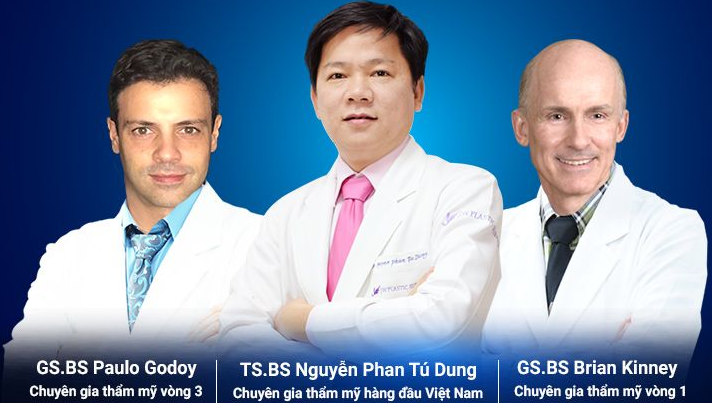 TS.BS Paulo Godoy(Brazil) -Chuyên gia thẩm mỹ vòng 3; TS.BS Nguyễn Phan Tú Dung- Chuyên gia thẩm mỹ Việt Nam; GS.BS Brian Kinney (USA)- Chuyên gia thẩm mỹ vòng 1 ( từ trái qua phải).