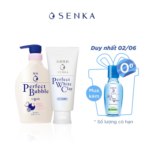 Bộ đôi Senka sữa tắm hương hoa dịu ngọt và Sữa rửa mặt đất sét trắng