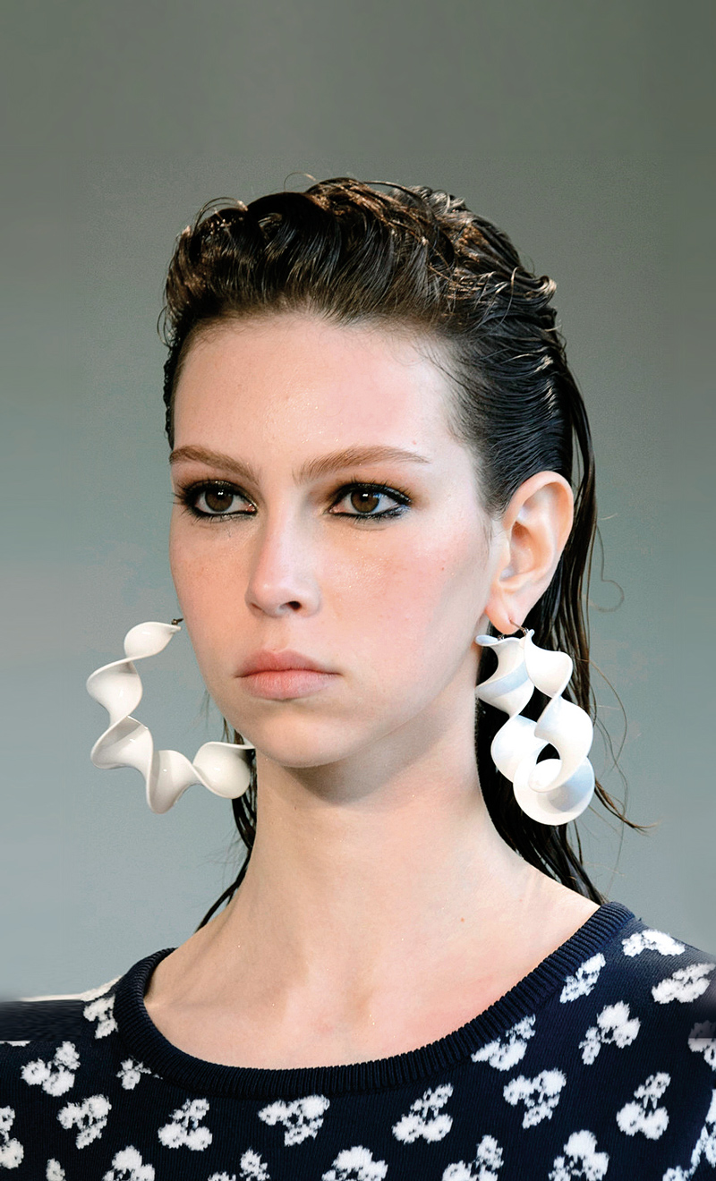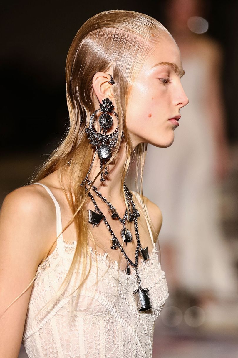 Tóc ướt thẳng tạo sự mạnh mẽ.