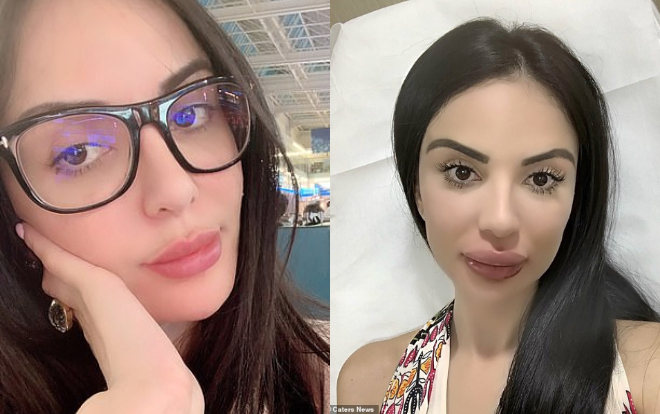 Trước và sau khi tiêm môi của nàng mẫu 27 tuổi. Nhìn hình có thể thấy trước khi đi tiêm filler, cô nàng đã có đôi môi rất đẹp thế nhưng chỉ vì muốn giống cô Kim có đôi môi căng đầy thì cô phải trải qua những ngày đau đớn