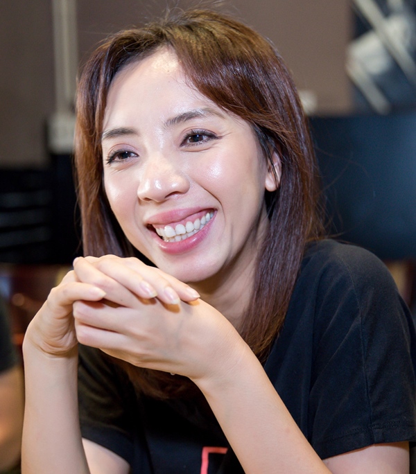 Khi cười, Thu Trang để lộ rõ nếp nhăn đuôi mắt và ở vùng cằm, thế nhưng cô lại sở hữu làn da căng bóng, trắng mịn.