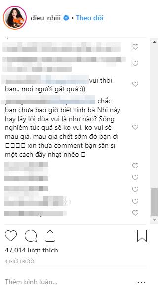 Lập tức nhiều tài khoản bình luận khá tiêu cực cho rằng nữ diễn viên đang “hoang tưởng”: “dở hơi”, “có biết thế nào là bản sao không”…Trong khi đó, một số tài khoản bảo vệ Diệu Nhi, cho rằng đây chỉ là câu nói đùa của Diệu Nhi, với tính cách hài hước, lầy lội, không khó hiểu khi đây chỉ là một câu nói đùa.