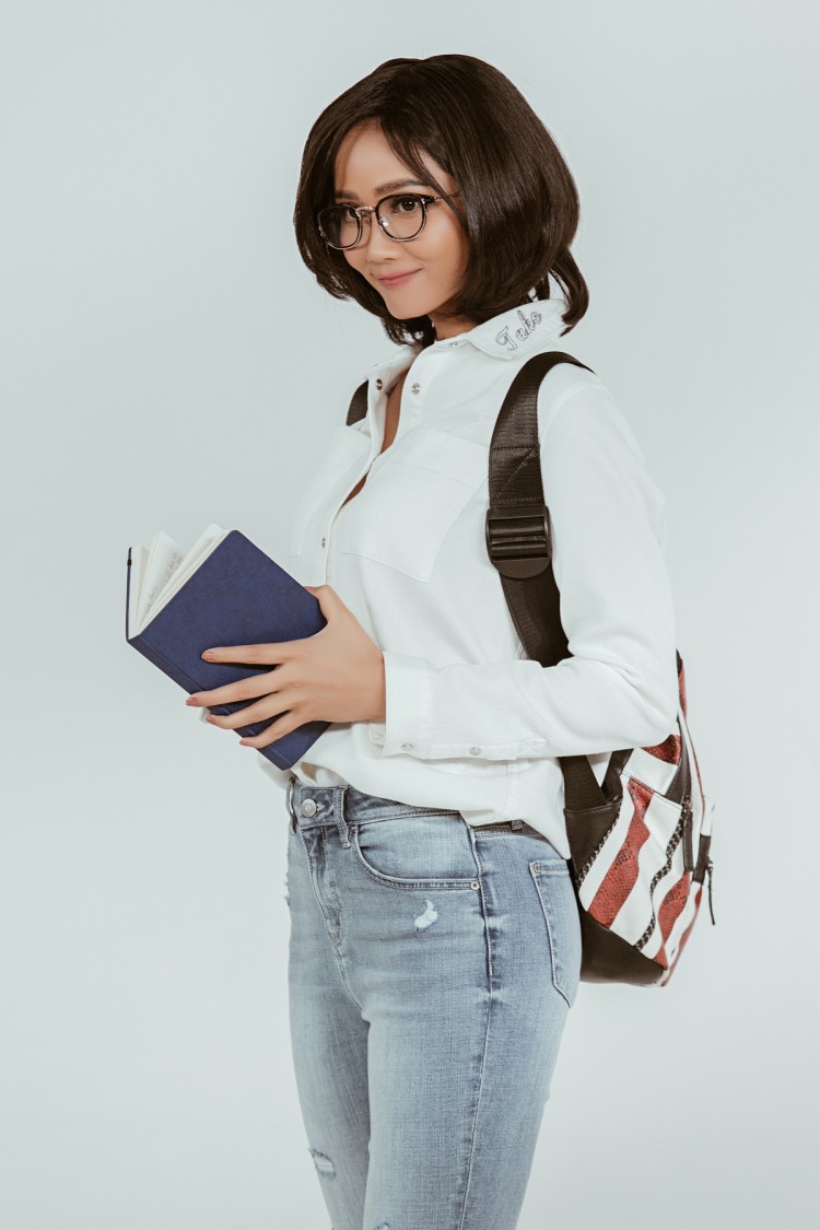 Cô hóa bí ẩn kiêu sa với mái tóc ngắn với mái xoăn.