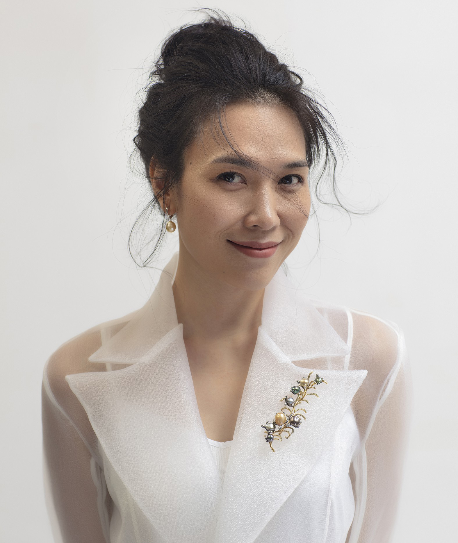 Với layout makeup tối giản, kết hợp với kiểu búi tóc rối Mỹ Tâm thăng hạng nhan sắc hoàn hảo.
