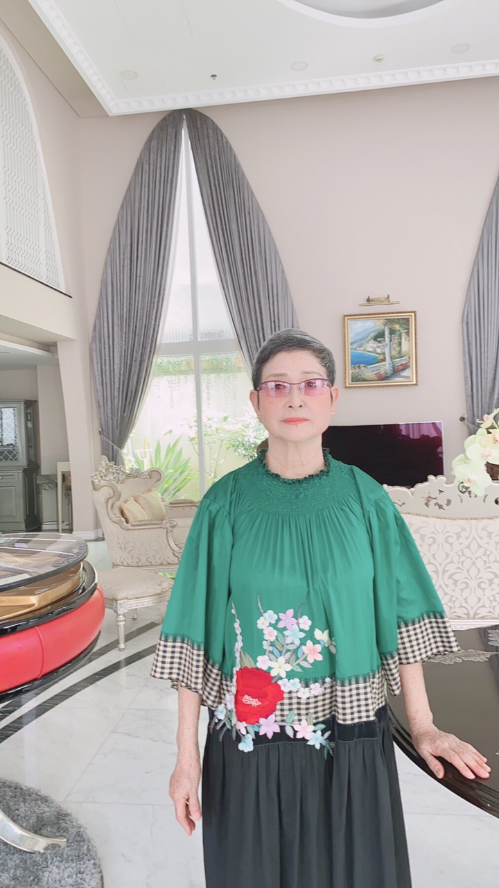 Dù đã gần 80 tuổi nhưng mẹ đẻ Hoa hậu Đền Hùng vẫn ăn diện rất sành điệu và sang trọng