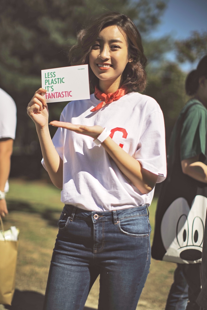 Là một trong người có mặt khá sớm tại lễ hội, đại sứ Đỗ Mỹ Linh và Phương Ly giản dị trong bộ trang phục quần jean và áo T-shirt mang thông điệp của chương trình “Less Plastic It’s Fantasic”. Cả hai đã nhanh chóng trở thành tâm điểm chú ý của các bạn trẻ Hàn cũng như người hâm mộ tham gia sự kiện.