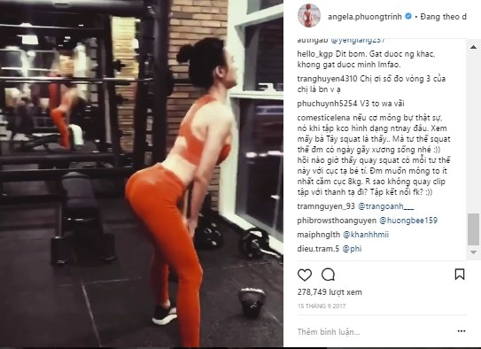 Clip thực hiện động tác Squat được Trinh đăng tải thu hút sự chú ý của cộng đồng mạng.