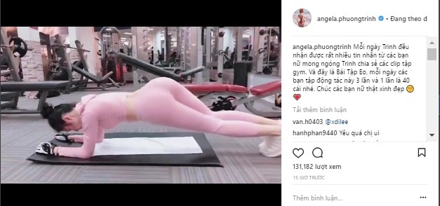 Clip Angela Phương Trinh hướng dẫn tập eo, có thể Trinh đang hướng dẫn động tác Plank. Nhưng động tác khá nhanh, tư thế không đúng và không tác động vào eo nhiều.