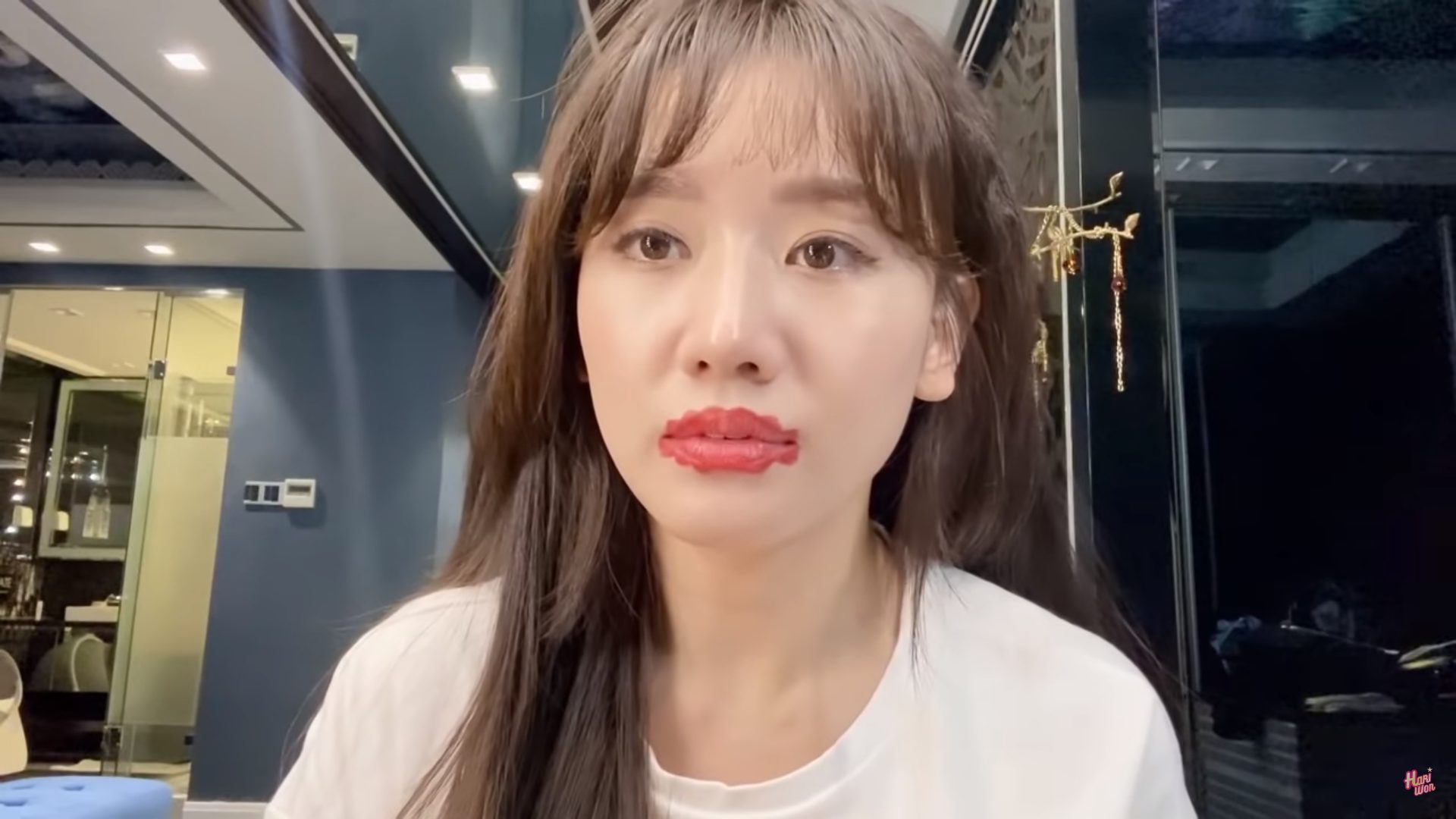 Hari Won cảm thấy 'cạn lời' sau khi mới tô phần môi trên