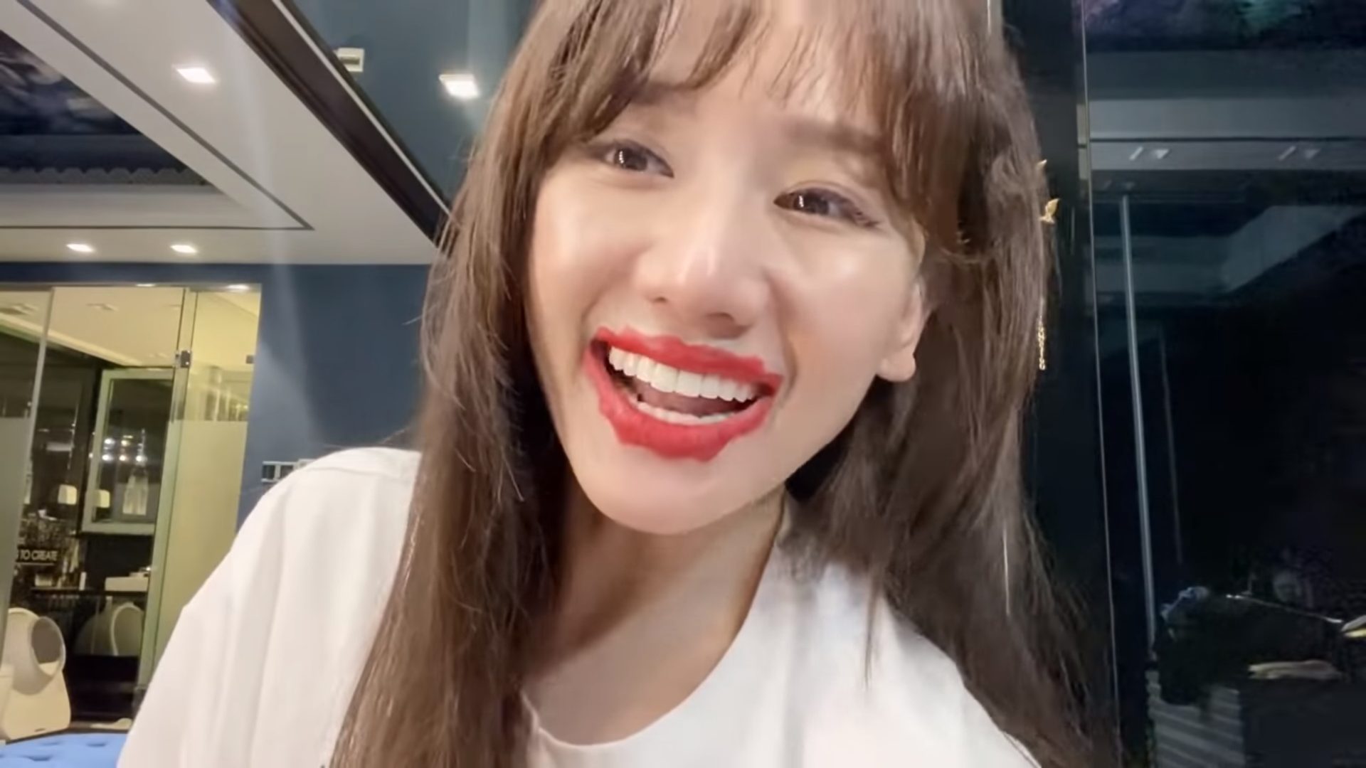 Bà xã Trấn Thành phải 'định thần' vài giây sau khi nhìn thấy đôi môi đang được tô son dang dở của mình