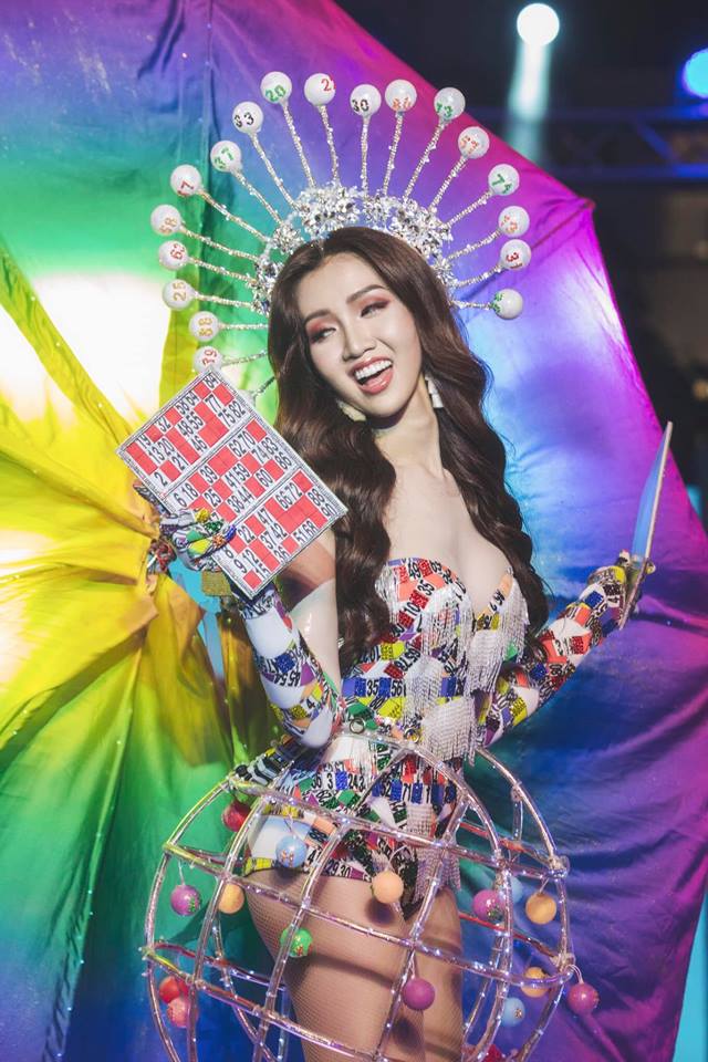 Đại diện Việt tại cuộc thi Hoa hậu chuyển giới Quốc tế 2019 - Đỗ Nhật Hà gây ấn tượng trong phần thi trang phục dân tộc với bộ trang phục “lô tô”. Người đẹp diện tông trang điểm màu rực rỡ phù hợp với tổng thể trang phục. Màu mắt match với màu môi đỏ đem đến vẻ ngoài nổi bật.