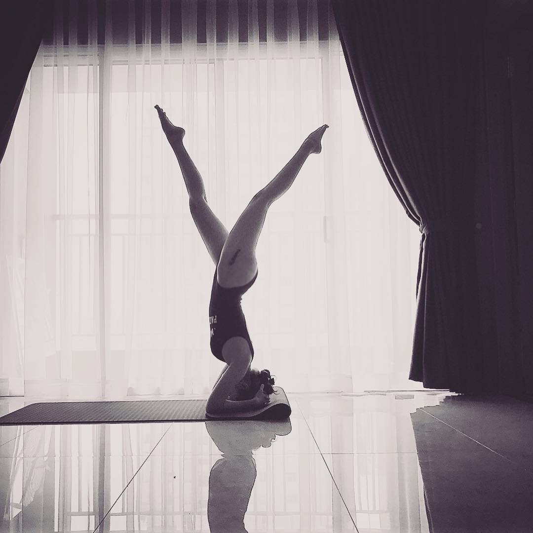 Tập luyện yoga từ lâu, nên Trà Ngọc Hằng có thể làm được nhiều động tác khó, yêu cầu độ linh hoạt, dẻo dai của cơ thể.