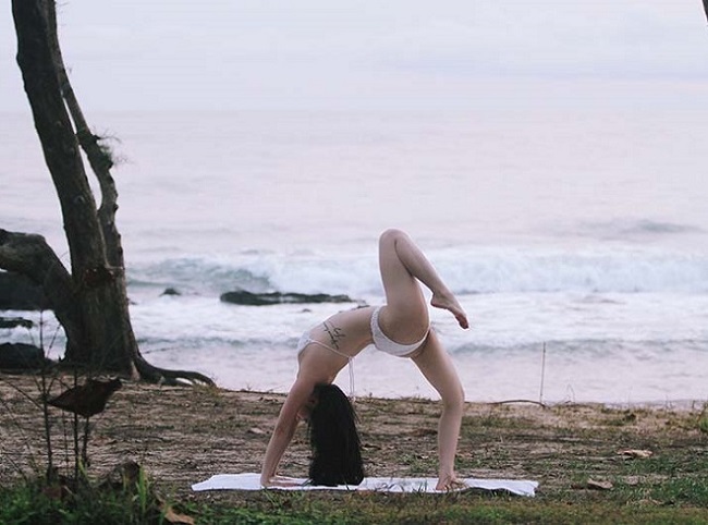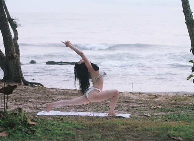 Nắm bắt được điều đó, những năm gần đây, sao Việt đã dành nhiều thời gian cho việc tập thể dục. Trong đó ngoài gym thì yoga là bộ môn thể thao được các người đẹp ưu ái và lựa chọn. Với tính chất đặc thù của yoga, người tập cần mặc các trang phục ôm sát, có độ co giãn cao để có thể dễ dàng thực hiện những động tác khó, yêu cầu đó hoàn toàn phù hợp với những bộ áo tắm, thế nên không ít người đẹp đã trưng dụng luôn loại trang phục này khi tập luyện.