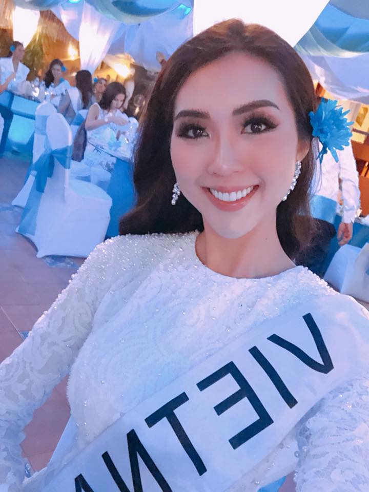 Có vẻ Tường Linh rất ưa chuộng kiểu vẽ lông mày này. Đại diện Việt nam lựa chọn nó cả trong những buổi tiệc sang trọng bên lề cuộc thi.
