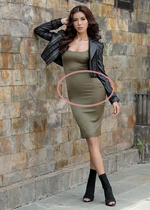 Minh Tú cũng phạm phải sự cố trong chiếc váy dáng ôm vì để lộ vùng bụng kém thon.