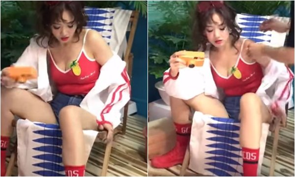 Lỡ livestream trong lúc đang chụp hình, Hari Won bị lộ ngấn bụng không hề nhẹ khi mặc áo bó sát sàn sạt. Tuy nhiên, khi chỉnh sửa ảnh, vòng 2 của mỹ nhân lai lại trở nên thon gọn vô cùng.