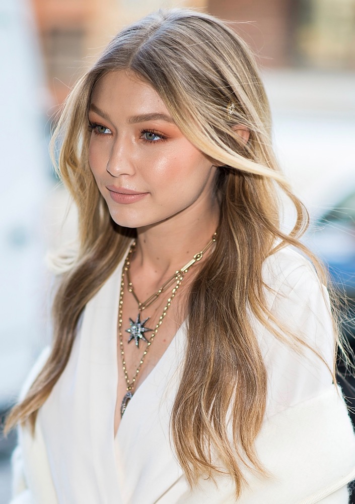 Gigi Hadid nổi bật với tông cam và đôi môi hồng nhạt tự nhiên.