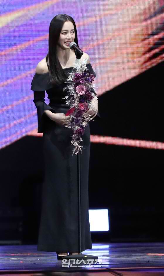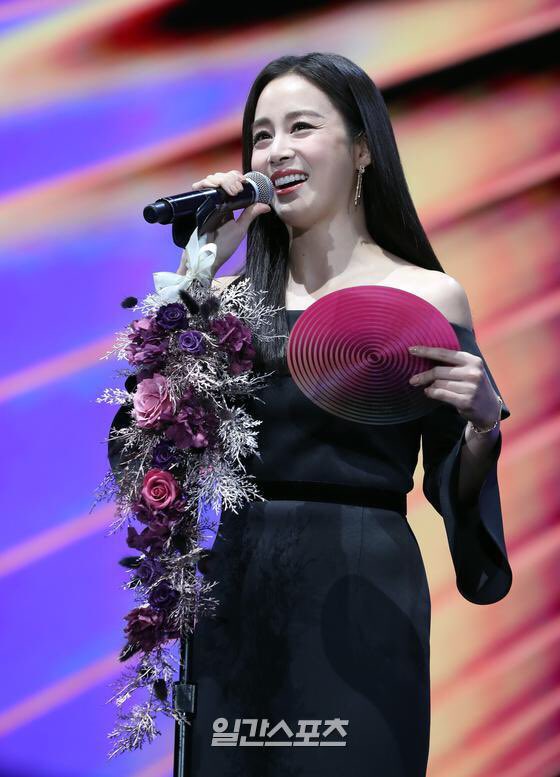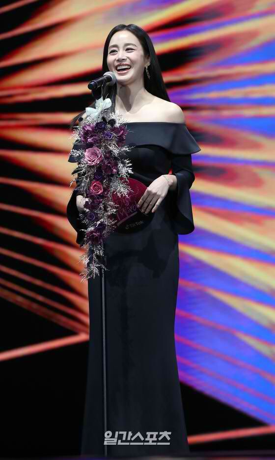 Kim Tae Hee diện trang phục là đầm đen có thiết kế hở vai, cô để tóc đen chẻ hai ngôi và duỗi thẳng dài. Nữ diễn viên cũng chọn kiểu trang điểm nhẹ nhàng làm nổi bật lên làn da trắng như sữa, đôi mắt cười cùng thần thái sang chảnh ngút ngàn của mình.