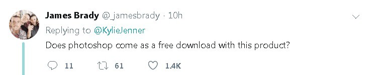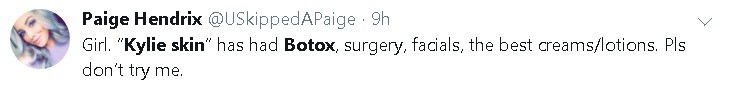 Tuy nhiên, vẫn có những ý kiến trái chiều trên trang twitter khi cho rằng Kylie Jenner có can thiệp photoshop trong hình ảnh khoe mặt mộc của mình, vài cá nhân còn cho rằng gương mặt đã qua chỉnh sửa,tiêm chích botox và trải qua phẫu thuật thẩm mỹ của Kylie mà còn dám tự tin tung ra sản phẩm dưỡng da chăng?