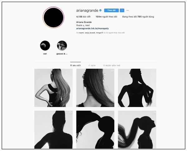 Không lâu sau đó. Cô ca sĩ xinh đẹp Ariana Grande cũng nhanh chóng update trên trang cá nhân riệng về việc mình là gương mặt mới của hãng