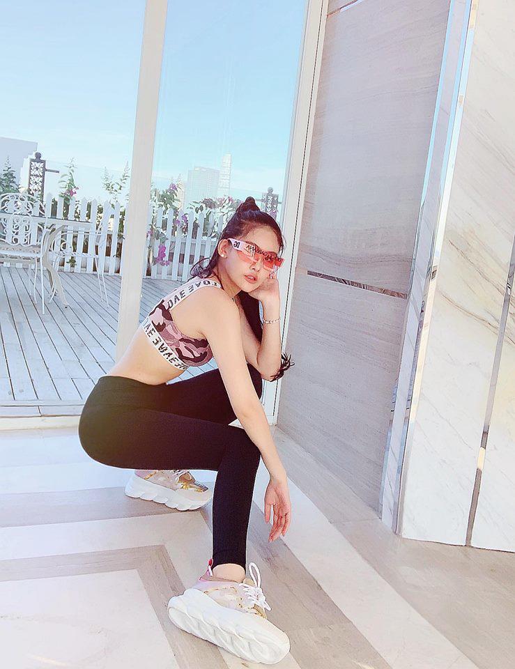 Khi được hỏi về bí quyết giữ dáng, cô thành thật chia sẻ: “Thật ra em ngại ai hỏi em mấy câu bí quyết giữ dáng lắm vì nếu trả lời hoa mỹ thì sẽ thành xạo đó, vì thật sự cơ địa em may mắn không bị mập phần bụng hay tay chân. Tuy nhiên em vẫn duy trì những bài tập đơn giản, nhẹ nhưng hiệu quả như tập mông, đốt cardio để đốt cháy lượng mỡ dư thừa trong cơ thể. Ngoài ra em còn tập thêm yoga để xả stress, giúp thư giãn trong những lúc em căng thẳng trong việc học. Bên cạnh đó, dù em ăn khuya hay ăn nhiều nhưng đều vẫn phải uống nước trái cây nguyên chất để thanh lọc cơ thể, hỗ trợ tiêu hóa, giúp đẹp da, cũng như thải những chất độc hại ra ngoài”.