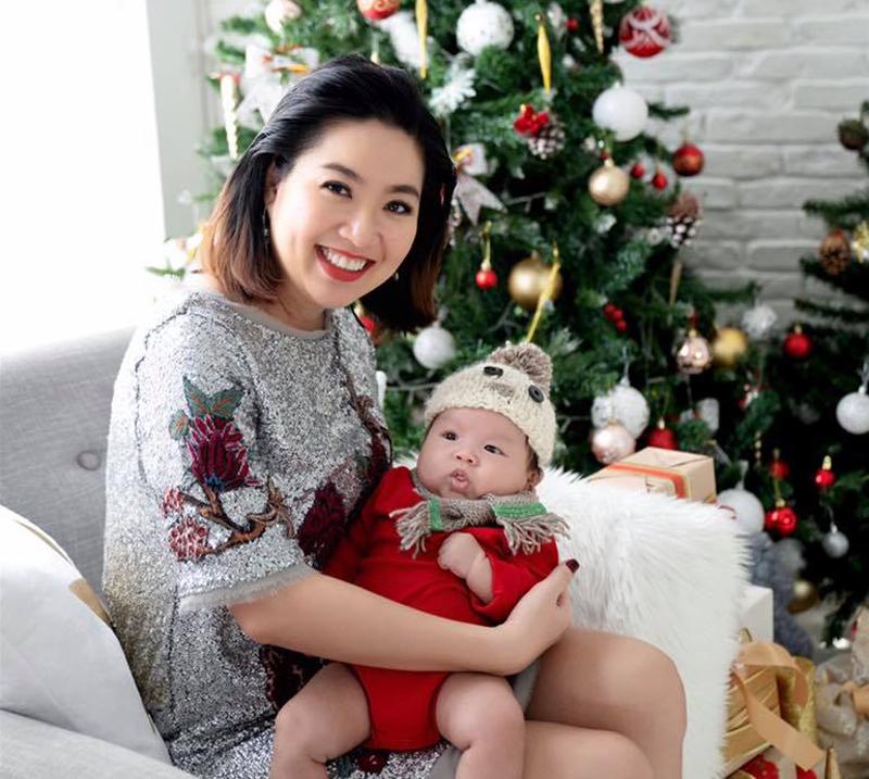 Sau khi sinh con, Lê Khánh xuất hiện với gương mặt mũm mĩm..
