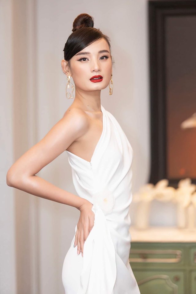 Diện chiếc váy trắng tinh khôi, trang điểm nhẹ nhàng, đôi môi đỏ mọng và kiểu búi tóc gọn gàng, Lê Thúy trông cực kỳ tinh tế và quyến rũ.