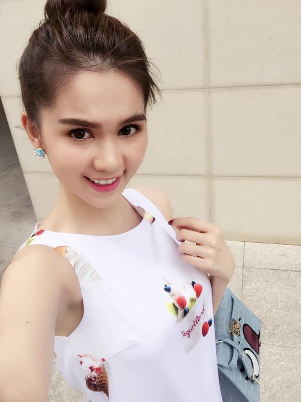 Kiểu trang điểm nhẹ nhàng này bị “làm quá” khi Ngọc Trinh cố tình làm mắt thơ ngây, và chọn cho mình đôi giãn tròng to không phù hợp với khuôn mặt.