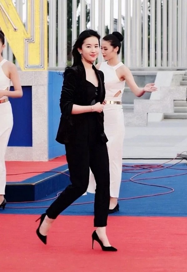 Một điểm cộng cho lần xuất hiện này của Lưu Diệc Phi chính là nhờ set đồ đen toàn thân mà làn da trắng ngần không tì vết của nữ diễn viên được 'bật tone' lên hẳn đồng thời cũng làm nổi bật phong cách trẻ trung cá tính, tạo cái nhìn khác cho cô so với hình tượng “thần tiên tỷ tỷ” trước đây.