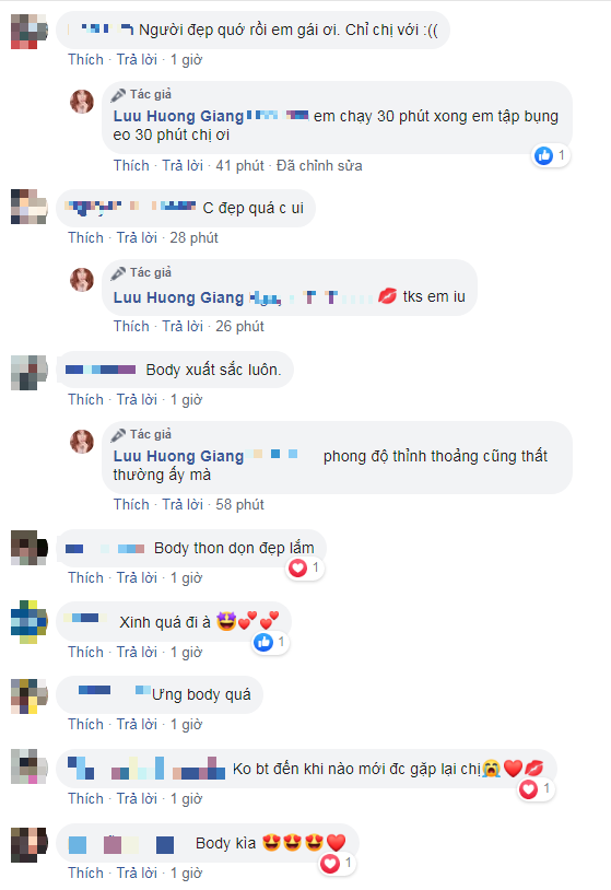 Cư dân mạng và người hâm mộ để lại bình luận khen ngợi đến vóc dáng của Lưu Hương Giang