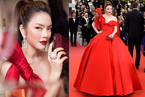 Vẻ kiêu kỳ của cô nàng trong ngày đầu tiên ở thảm đỏ Cannes được ví như vẻ đẹp của nàng Cinderella đi dự tiệc. Màu đỏ chói của đôi môi, móng tay, váy áo trên nước da trắng ngần thể hiện sự háo hức báo hiệu một mùa tiệc tùng sôi động bắt đầu. Đây cũng là sự xuất hiện đầy thông minh mà ekip đã chọn lựa giúp nhân vật của mình tỏa sáng.