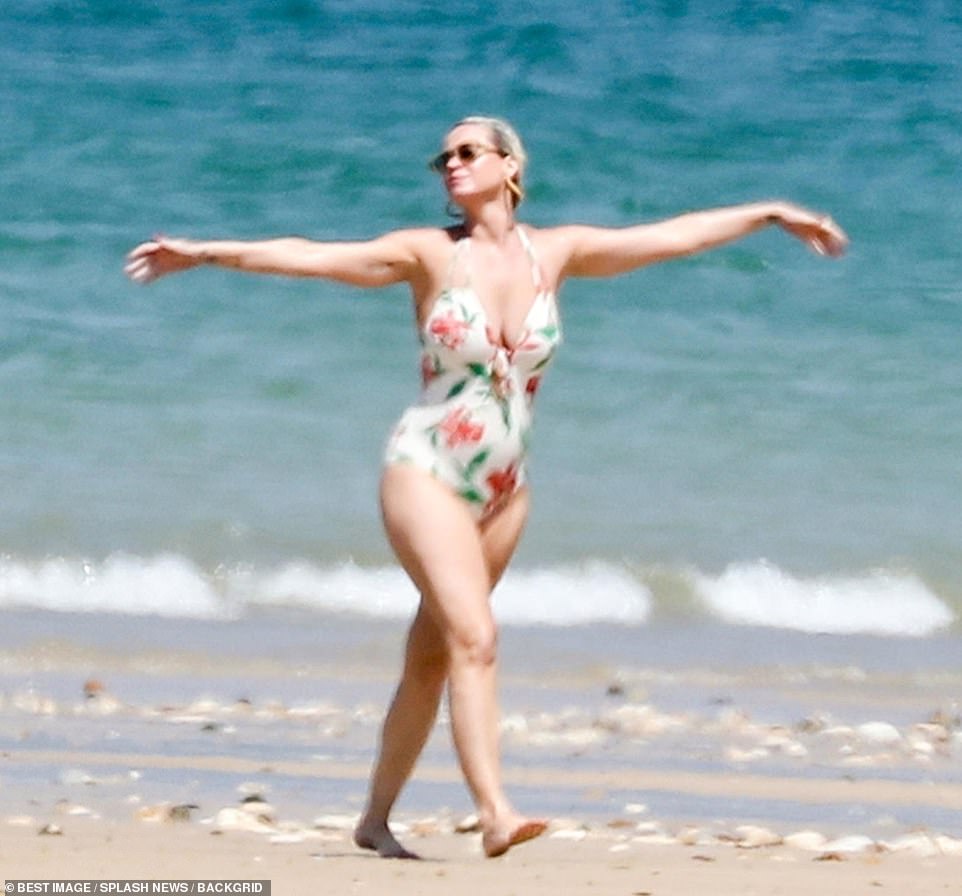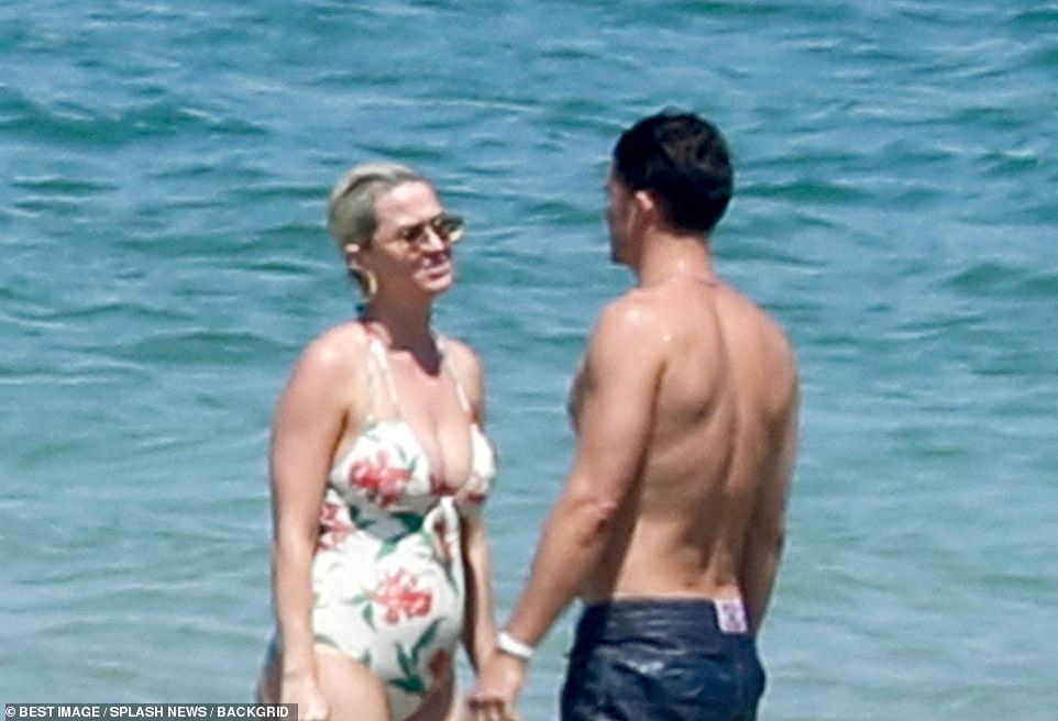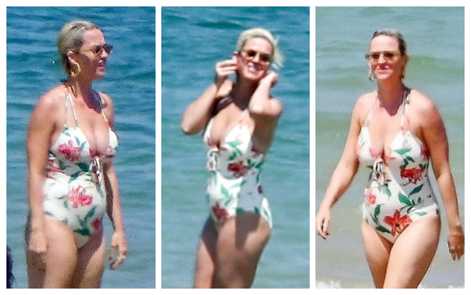 Katy Perry lộ bụng tròn vo trong bộ áo tắm nữ tính của mình