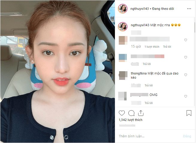 Dù Thúy Vi có trang điểm 7749 lớp hay tút tát bằng app thần thành thì câu chuyện vẫn không có gì đáng gây xôn xao nếu như cô nàng không đính kèm dòng trạng thái: “Mặt mộc nha”. Để kết quả cô nhận về hàng loạt bình luận “cà khịa” về nhan sắc của mình, trong số đó, bình luận “mặt mộc đã qua dao kéo” của một “anti-fan” được cho là “cao tay” nhất.