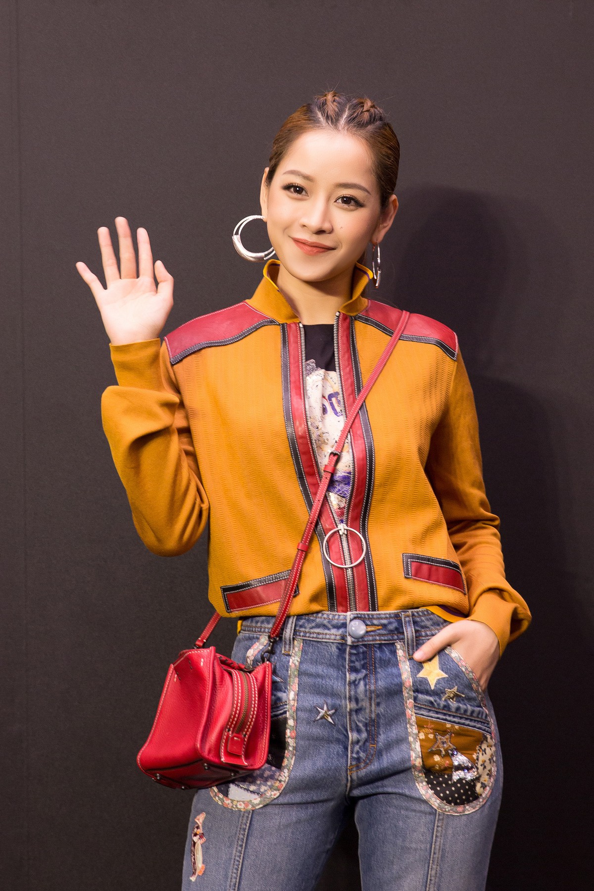 Xuất hiện khá giản dị nhưng Chi Pu vẫn xinh đẹp nổi bật tại cùng sự kiện. Cô nàng để kiểu tóc tết tinh nghịch và chọn tone son màu cam đất trẻ trung. Nhìn Chi Pu trẻ trung hơn tuổi thật của mình rất nhiều trong hình ảnh này.