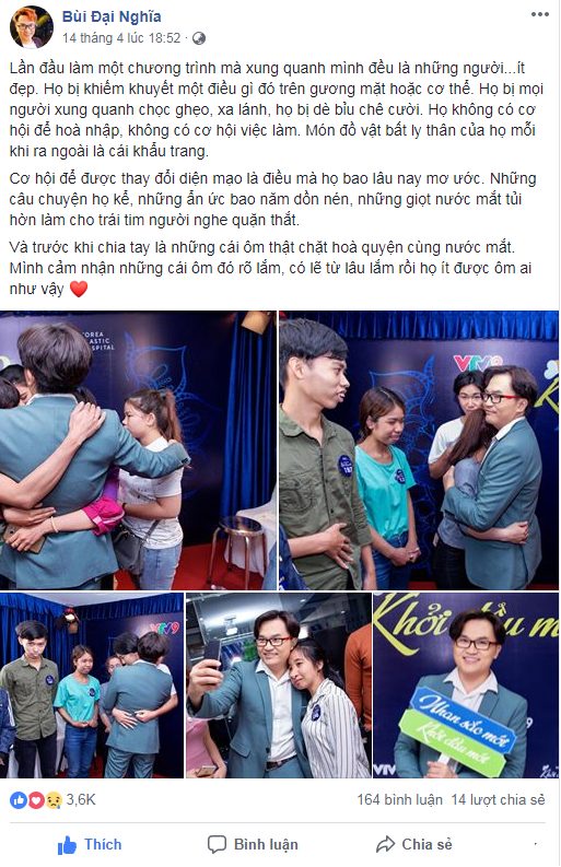 Ngay sau khi tham gia chương trình, Đại Nghĩa chia sẻ những cảm xúc của mình lên trang cá nhân.