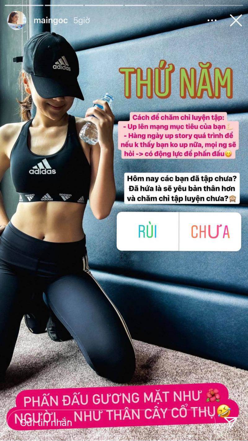 Việc chụp ảnh bản thân mỗi ngày, đăng lên trang cá nhân để dân mạng "nhắc nhở" cũng là cách giúp MC Mai Ngọc giữ được ý chí bản thân, tập luyện nghiêm túc giữa mùa đại dịch.